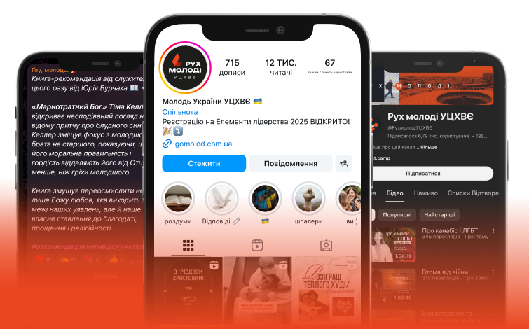 Приєднуйтесь до нас у соцмережах, щоб слідкувати за новинами і майбутніми заходами Руху молоді: